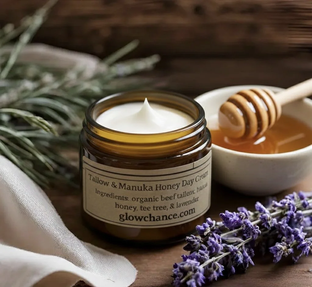 GlowChance is a homegrown business that began in my kitchen with a mission to create affordable, all-natural skincare. Using ingredients like beef tallow, manuka honey, frankincense, and other clean botanicals, each product is thoughtfully crafted to be safe, effective, and deeply hydrating without clogging pores. Every formula is designed to nourish your skin and bring out your natural glow.